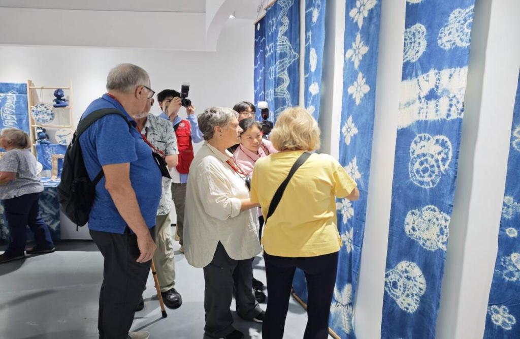 随后,研学团走进艺术创意学院荆楚非遗文化传承研究中心,开启了一场非遗与科技融合的奇妙之旅。在数字展厅,先进的数字技术将荆楚非遗文化以全新的方式呈现,数字人栩栩如生地讲述着非遗故事,数字课堂则打破了时空限制,让成员们仿佛置身于非遗技艺的传承现场;在非遗蓝染展厅,传统蓝染工艺与现代设计理念相结合的作品,展现出独特的艺术魅力;ai智能化妆镜的互动体验,更是让大家感受到了科技为非遗文化带来的创新活力;来到武汉剪纸大师工作室,师生团队现场展示的精湛技艺让研学团成员们大开眼界。一把剪刀、一张红纸,在他们手中仿佛被赋予了生命,瞬间变幻出栩栩如生的图案;在3d裸眼展示区展出的学生团队运用ai技术制作的越王勾践剑动画视频,将古老文物与现代科技完美融合,生动地展现了文物的历史背景和文化内涵。