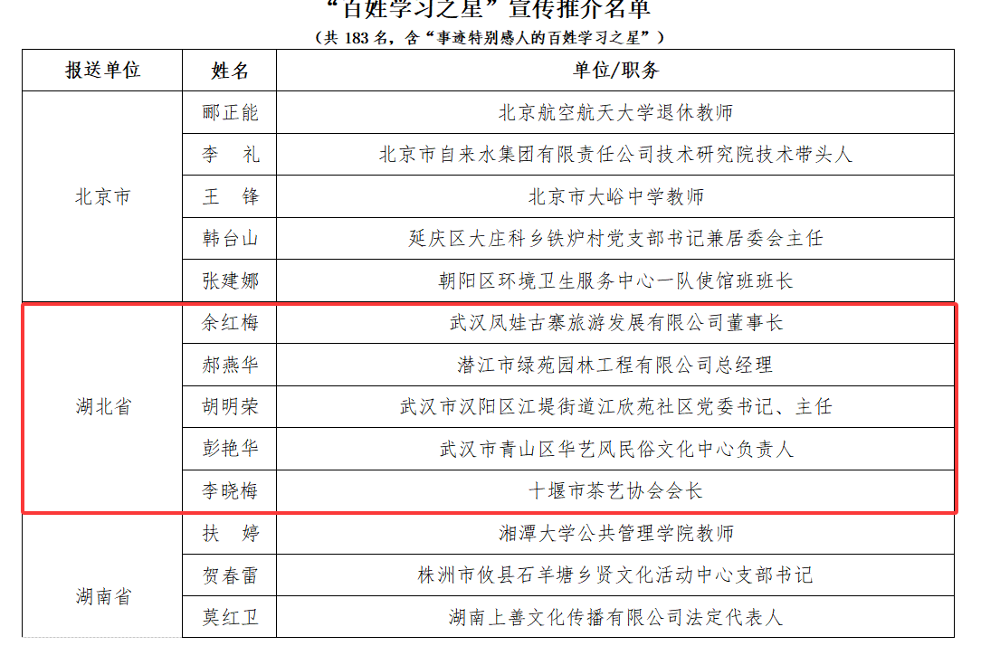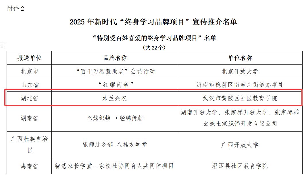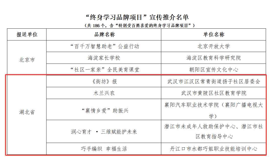 湖北获全国“百姓学习之星”“终身学习品牌项目”宣传推介名单截图