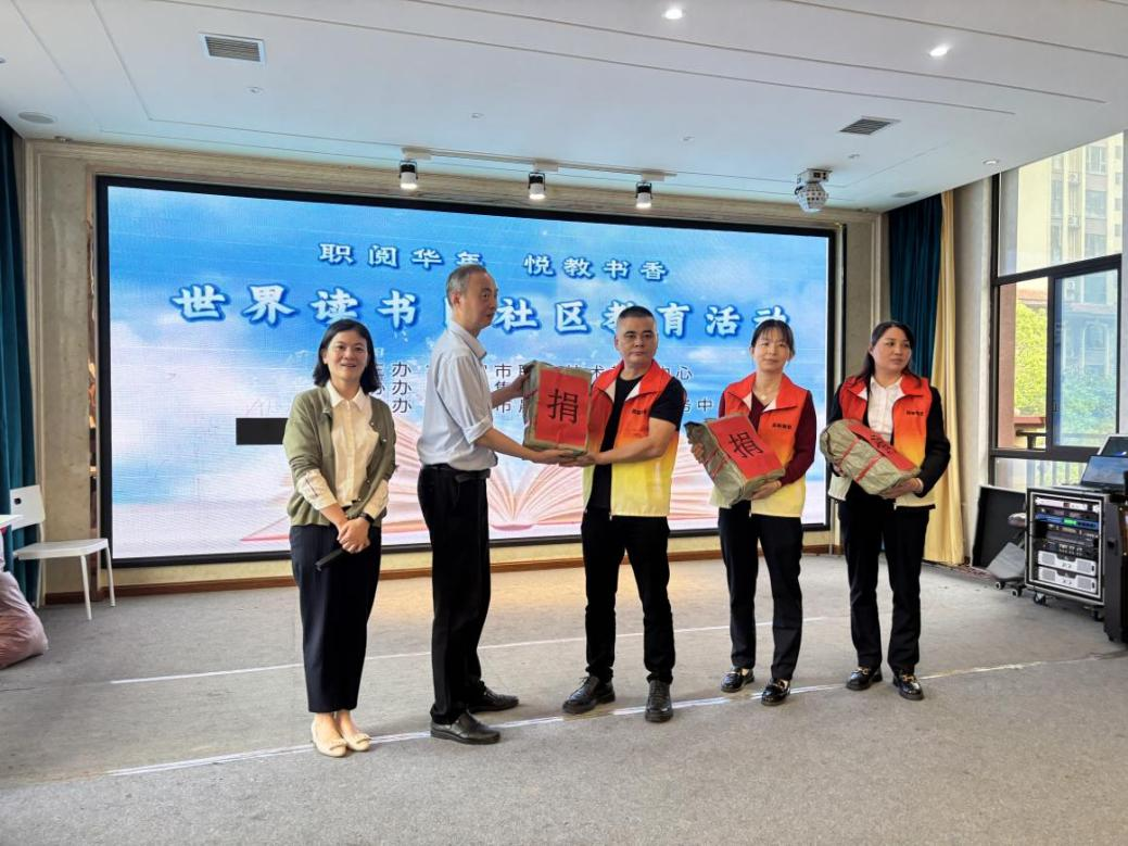 本网讯(通讯员 叶展铸 白荷/文 乐年香/图)春风微拂,书香飘溢。4月22日上午,由黄冈电大武穴分校主办的“职阅华年·悦教书香”世界读书日社区教育活动在御江半岛小区举行。本次活动由“七个一”环节组成,即一次书刊捐赠、一篇读书分享、一堂知识讲座、一场健身学习、一曲红歌同唱、一室戏曲联唱、一份爱心礼品。