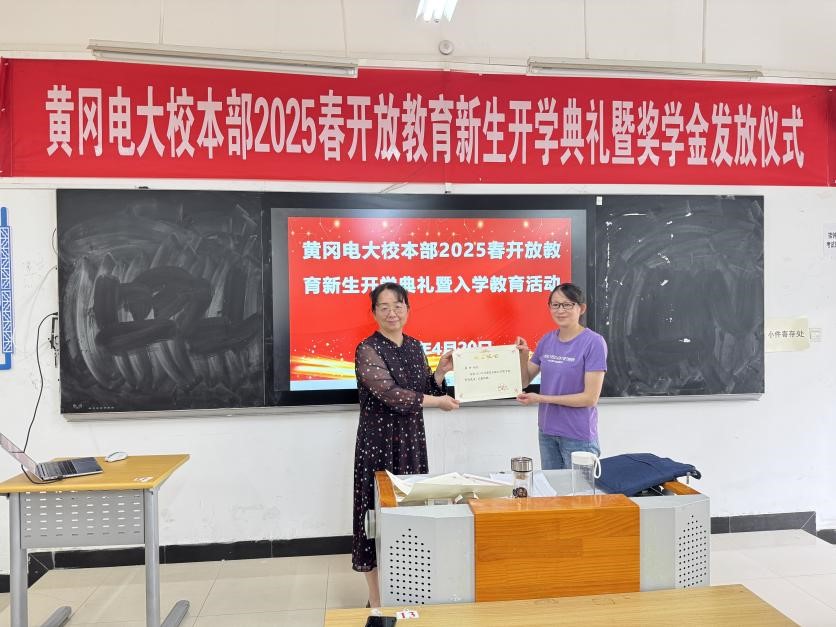本网讯(通讯员 叶展铸 文/图)4月20日上午,黄冈电大校本部举行2025春季学期新生开学典礼暨奖学金发放仪式。副校长曾伟、相关处室负责人、2025春季学期本、专科新生和校本部奖学金获得者参加。
