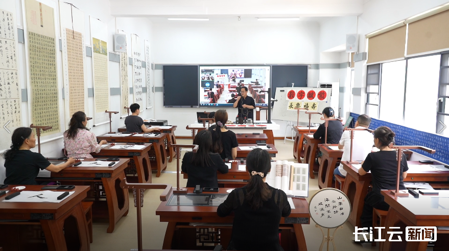 在数字技术的助力下,老年学员与武汉经开区沌口小学的孩子们隔空“切磋”,以智能设备为桥梁,开启跨代书法共学的新模式。